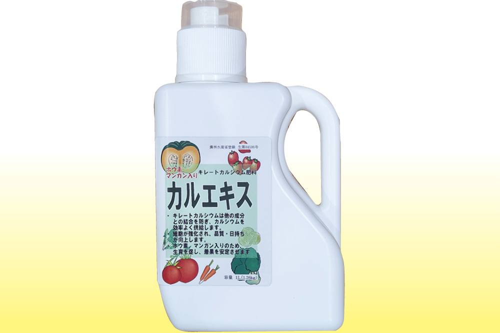 また、カルシウムは、植物内の有機酸や燐酸、硫酸、炭酸などと直ぐに結合して非水溶性の化合物となり、移動が出来なくなってしまうため、根から遠い器官ほどカルシウム含有量が低下する。葉面散布の場合、繰り返し散布してください。薬散、液肥に混用して散布すると手軽です。