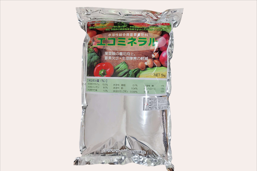 マグネシウムは葉緑体の強化に用いられ、マンガンなどは微量ミネラルの欠乏予防など、各種生理障害が発生しにくい土壌環境づくりに役立つ。